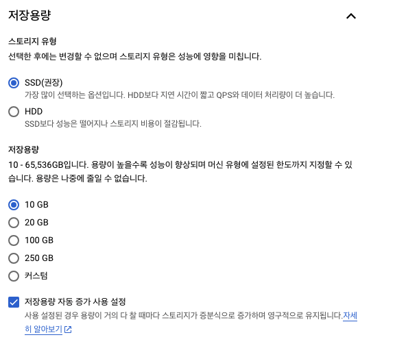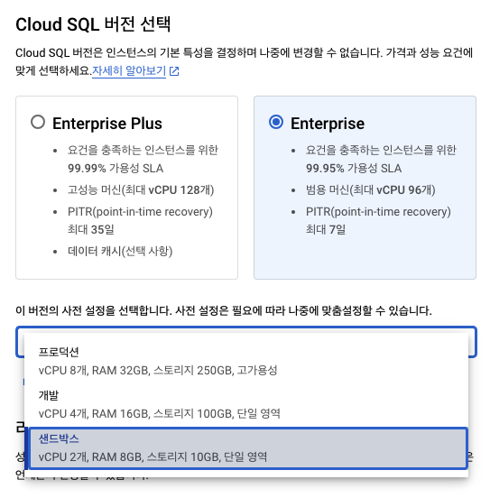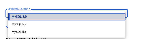 cloud sql 버젼 선택