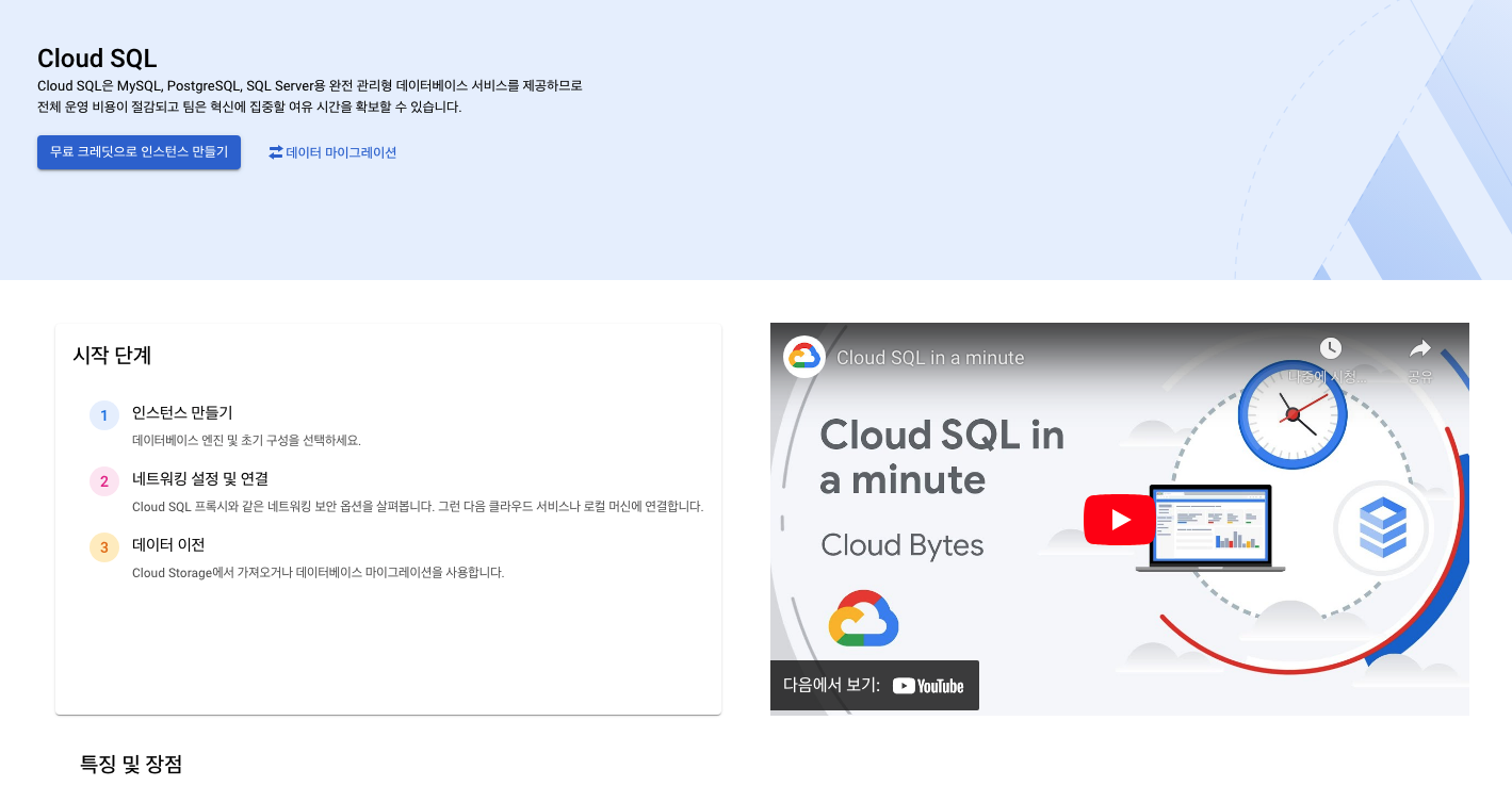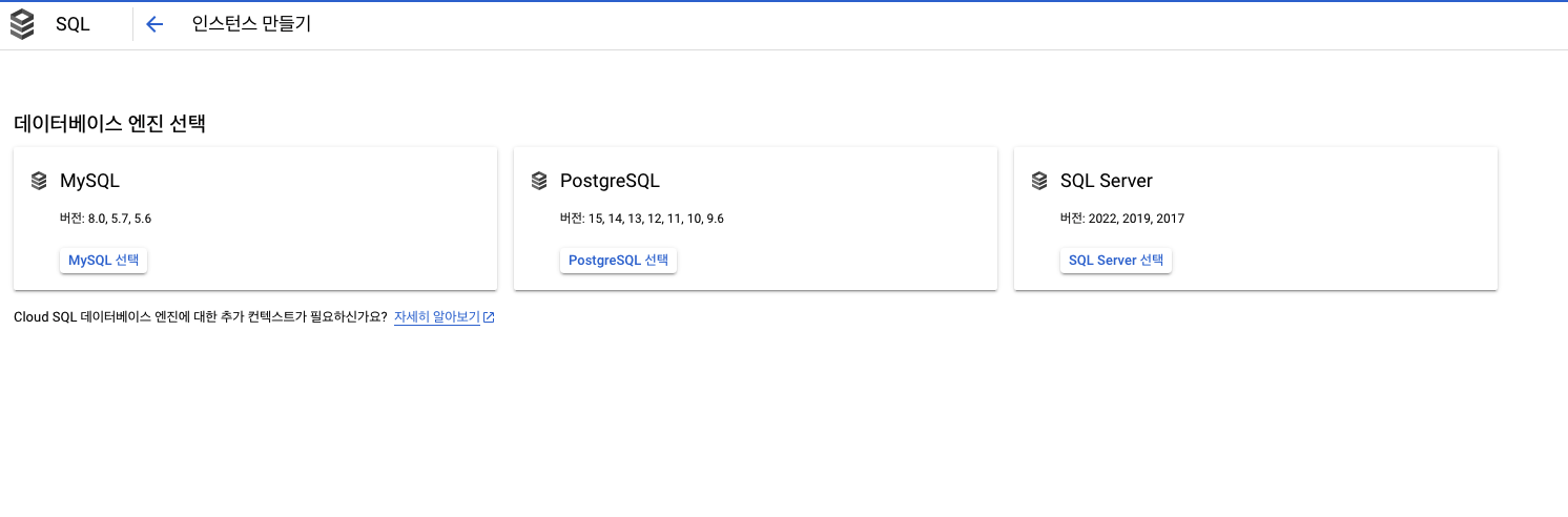 gcp 에서 cloud sql 메뉴를 들어가게 되면 인스턴스 생성할 수 있다