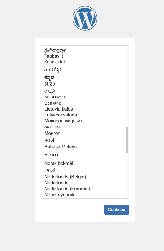 생성된 인스턴스의 외부 ip 를 브라우져에 입력하면 아래와 같이 워드프레스 초기 설정이 뜹니다.