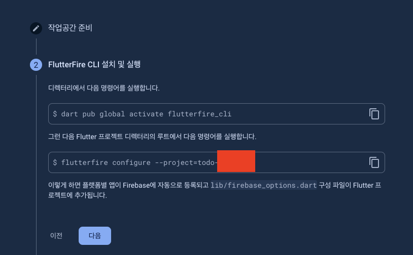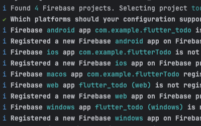 flutterfire configure --project=todo-프로젝트아이디