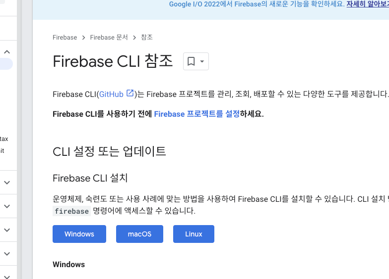 firebase cli 를 먼저 설치를 해줍니다.