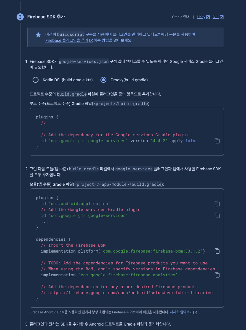 프로젝트에 firebase sdk 추가