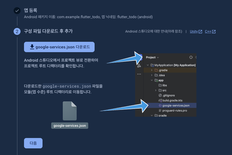 google-services.json 파일을 다운 후