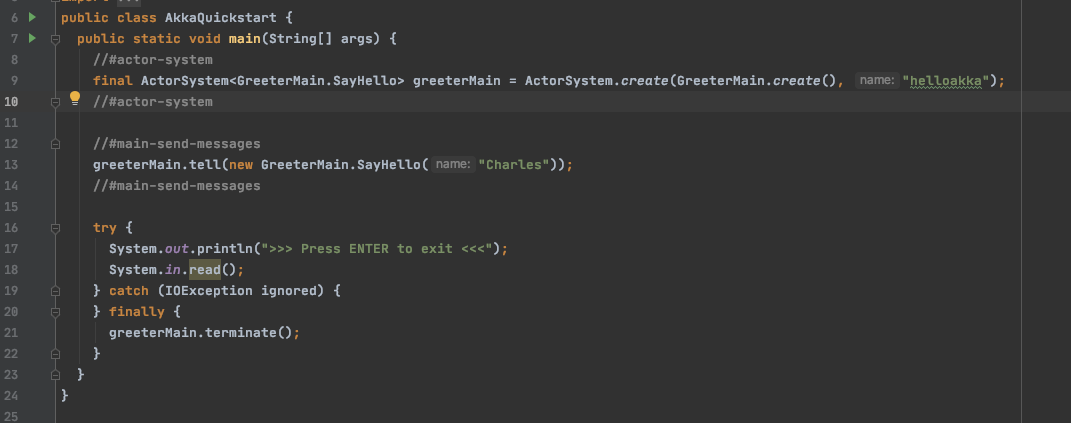 final ActorSystem<GreeterMain.SayHello> greeterMain = ActorSystem.create(GreeterMain.create(), "helloakka");